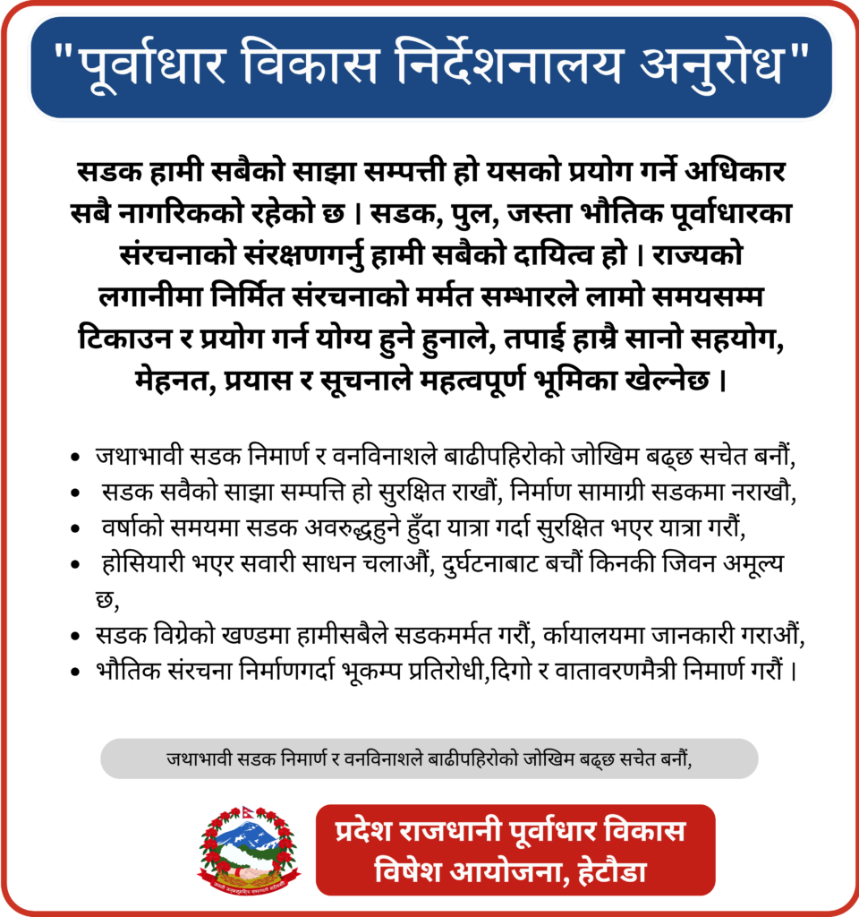 ढुंगा, गिट्टी र बालुवा उत्खन्न, व्यवस्थापन मापदण्ड २०७७ को दफा ४ (१०) मा ‘घना बस्ति र वन क्षेत्रको दुई किलोमिटर, राजमार्गको पाँचसय मिटर दुरीभित्रको नदी, सडक पुल तथा झोलुङ्गे पुलको एक किलोमिटर तल र पाँचसय मिटर माथिको नदीजन्य पदार्थ उत्खन्न र संकलन गर्न पाइने छैन ।’