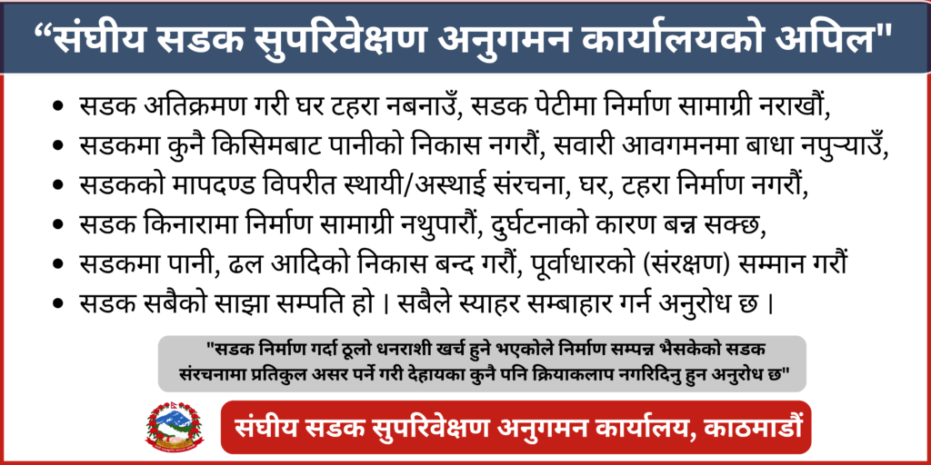 ढुंगा, गिट्टी र बालुवा उत्खन्न, व्यवस्थापन मापदण्ड २०७७ को दफा ४ (१०) मा ‘घना बस्ति र वन क्षेत्रको दुई किलोमिटर, राजमार्गको पाँचसय मिटर दुरीभित्रको नदी, सडक पुल तथा झोलुङ्गे पुलको एक किलोमिटर तल र पाँचसय मिटर माथिको नदीजन्य पदार्थ उत्खन्न र संकलन गर्न पाइने छैन ।’