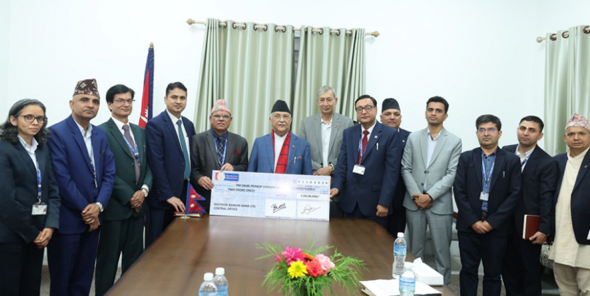 बैंक सञ्चालक समिति अध्यक्ष दिलिपकुमार ढुङ्गानाले सम्माननीय प्रधानमन्त्री केपी शर्मा ओलीलाई मङ्गलबार एक कार्यक्रमका बीच दुई करोड रुपैंयाको चेक रकम हस्तान्तरण गरेका हुन्।
